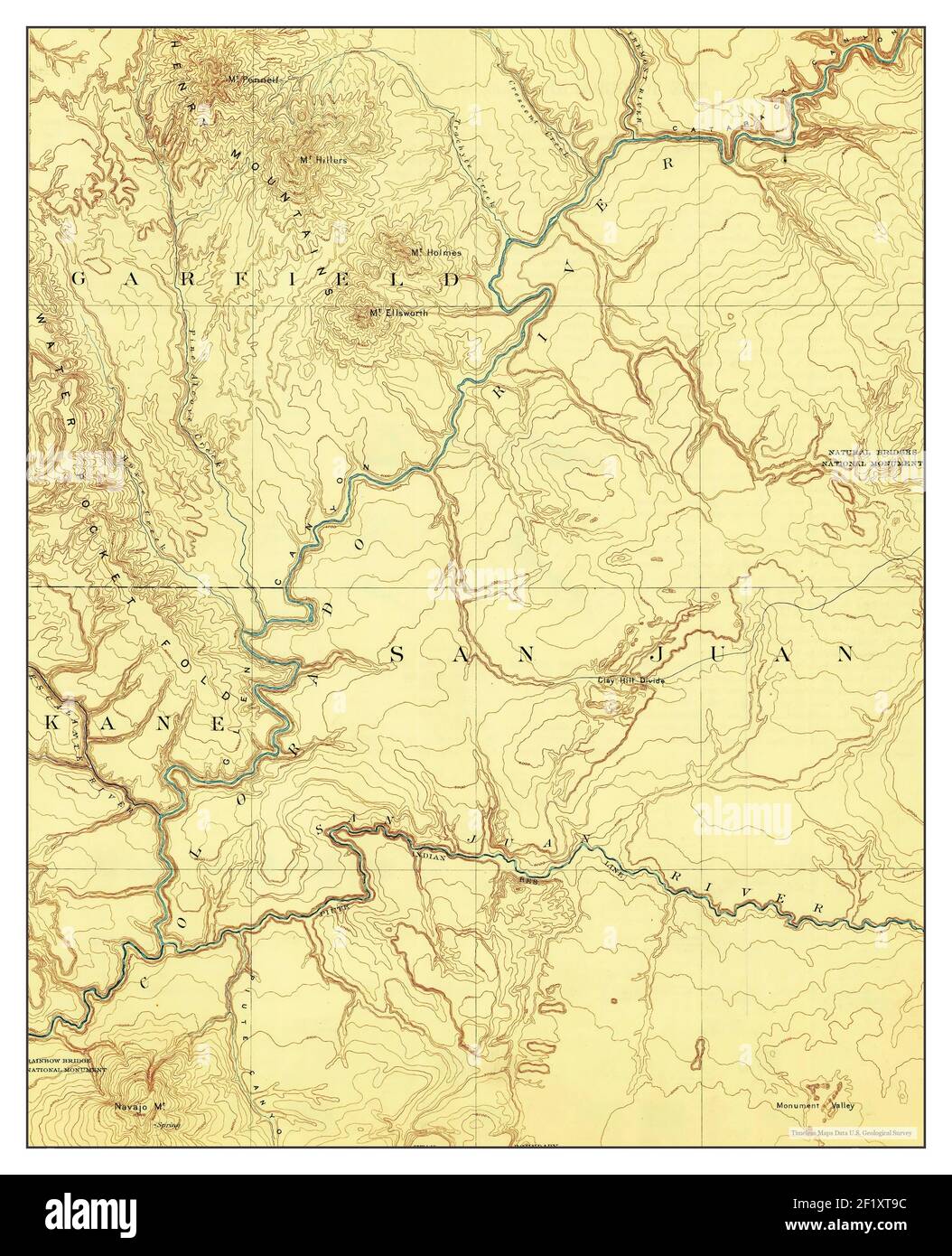 Henry Mountains, Utah, map 1892, 1:250000, United States of