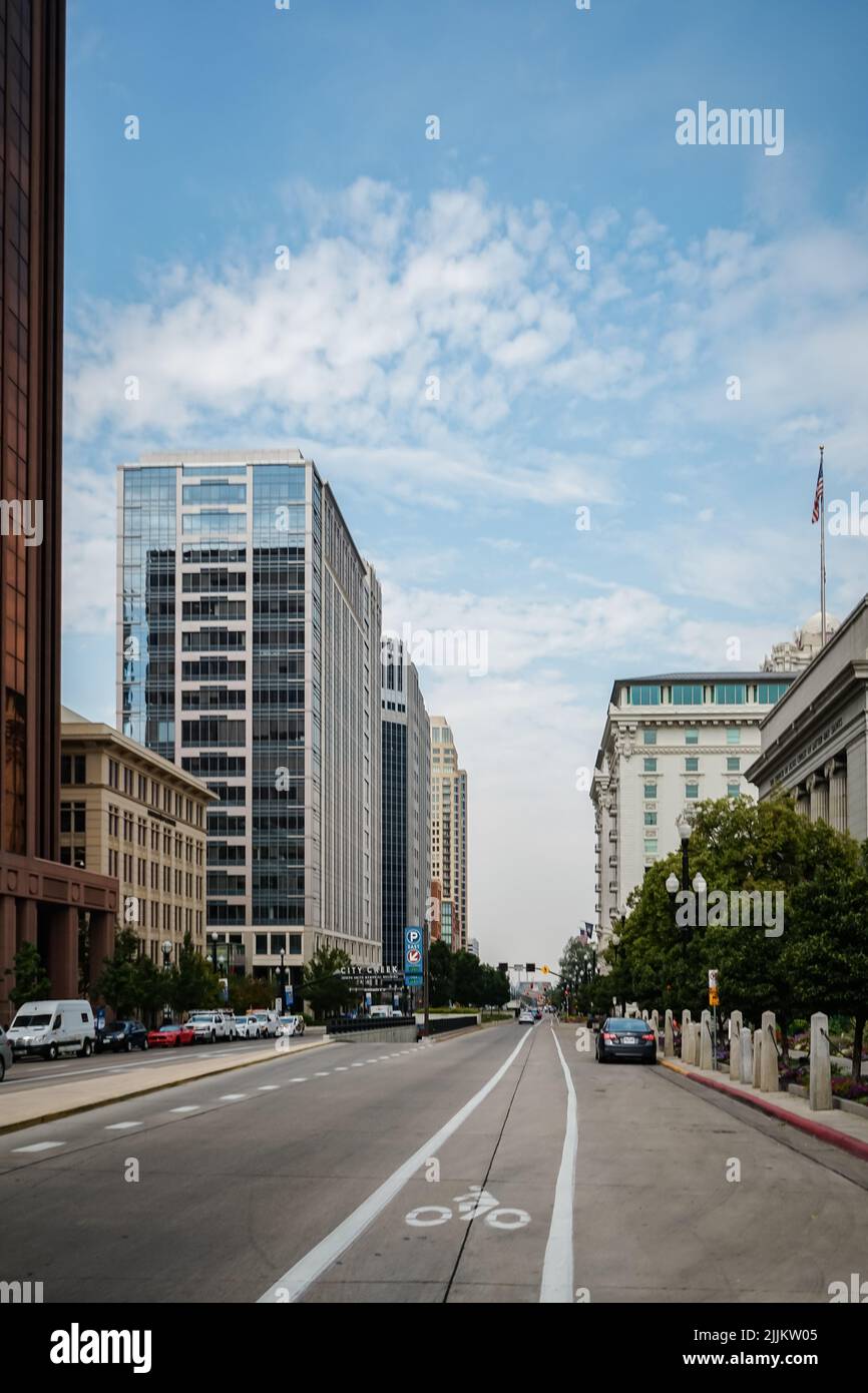 Aerial view of Salt Lake City downtown on Main Street in Salt Lake