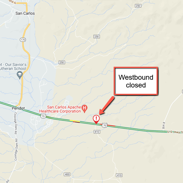 Arizona DOT on X: “*CLOSURE* US 70 westbound is closed near San