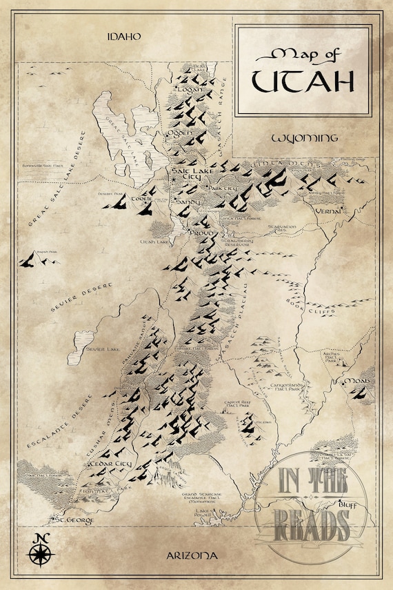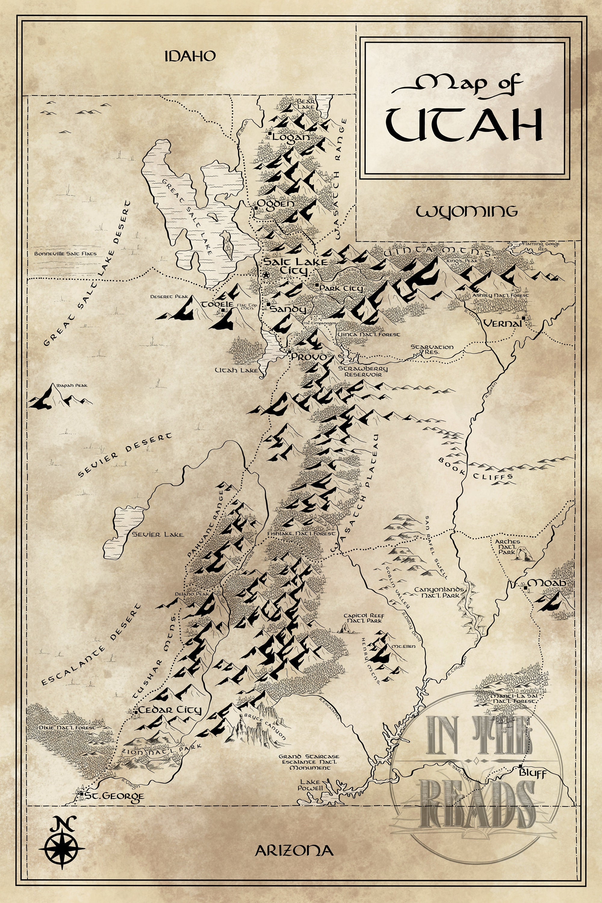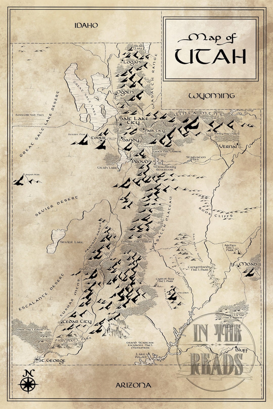 Utah Map / Tolkien Inspired / Free US Shipping Etsy